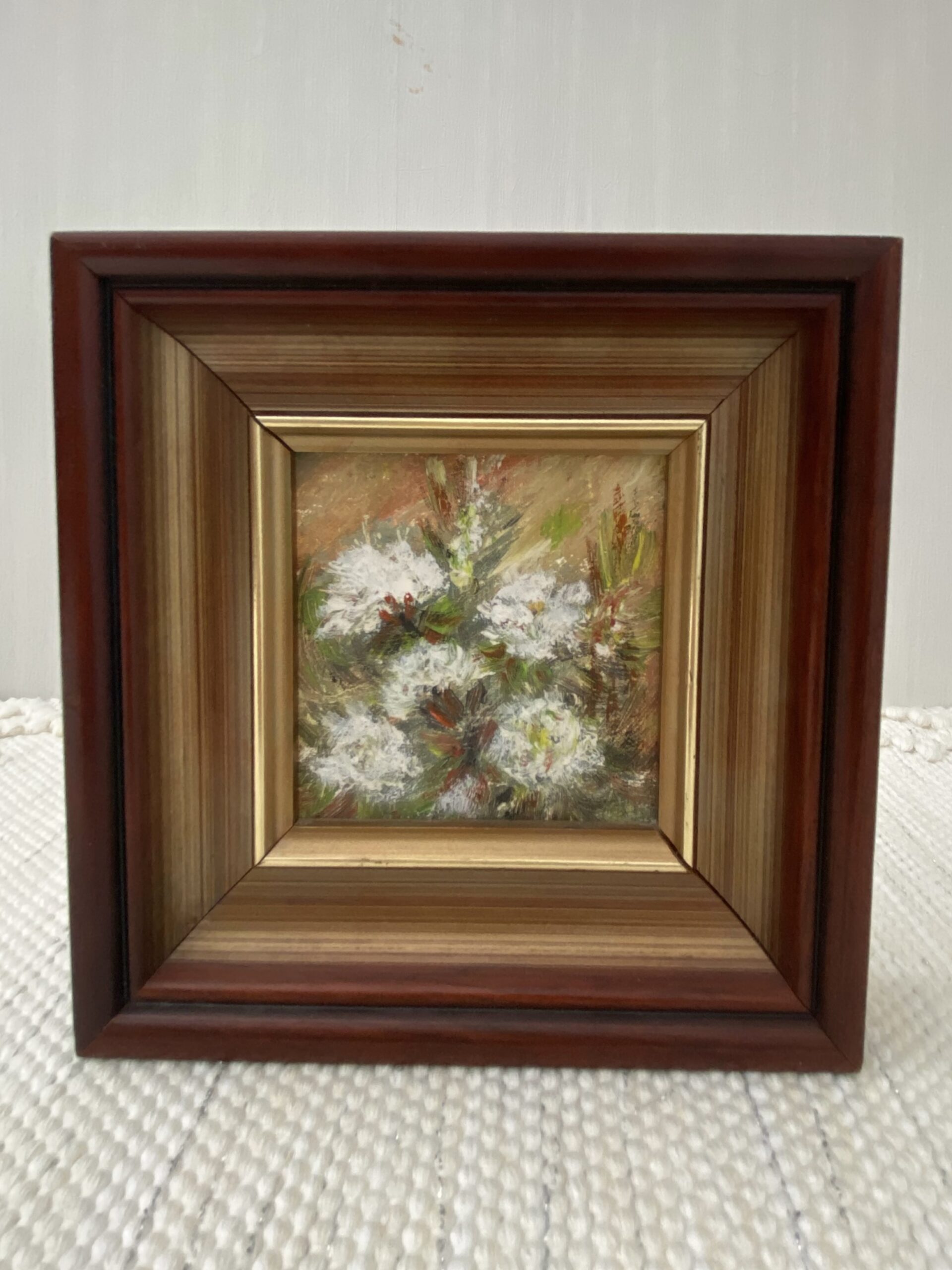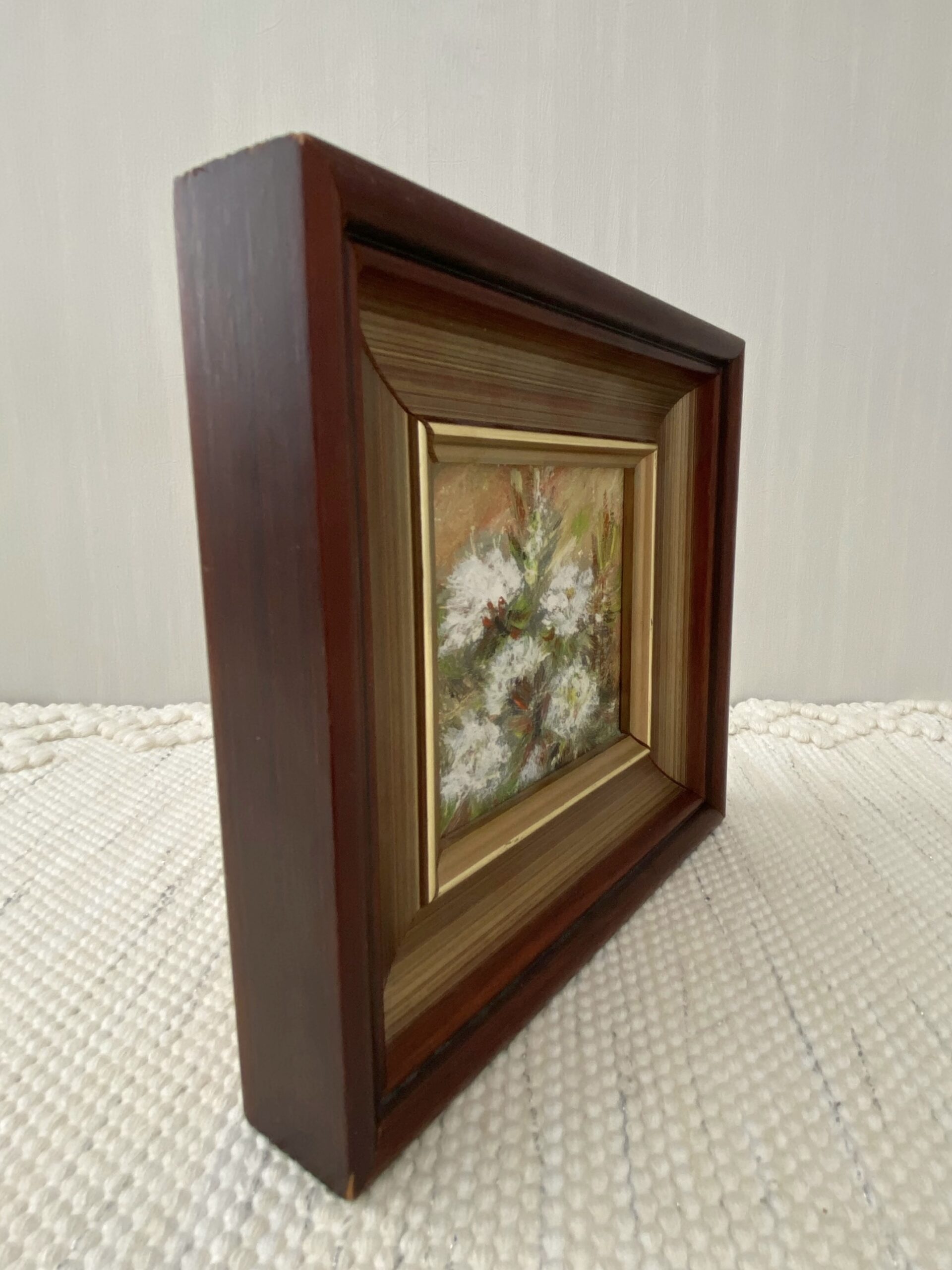 Armas ja hubane väike maalitud pilt paksus puitraamis lisab sinu koju soojust ja klassikalist vintage-hõngu. Õrn lillemotiiv koos sügava ja kvaliteetse puidust raamiga loob ajatu ja elegantse terviku.